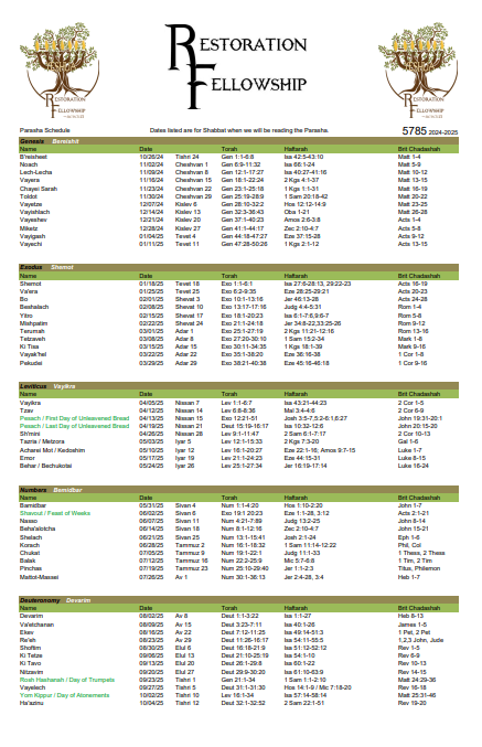 24-25 Parsha Schedule